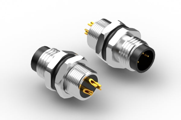 Connector, M8 A-code plug, 4 pin, 8xL19.2 mm, panel mount, solder cup, gold plated, IP67