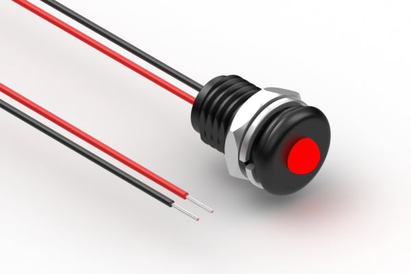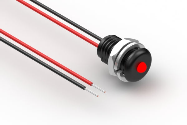 Cable, 150 mm, red LED 57-00001 to 5 mm tinned, 5-30 V, panel mount, 26 AWG, UL11028, IP68