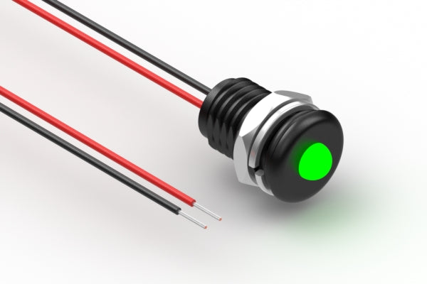 Cable, 150 mm, green LED 57-00012 to 5 mm tinned, 5-30 V, panel mount, 26 AWG, UL11028, IP68