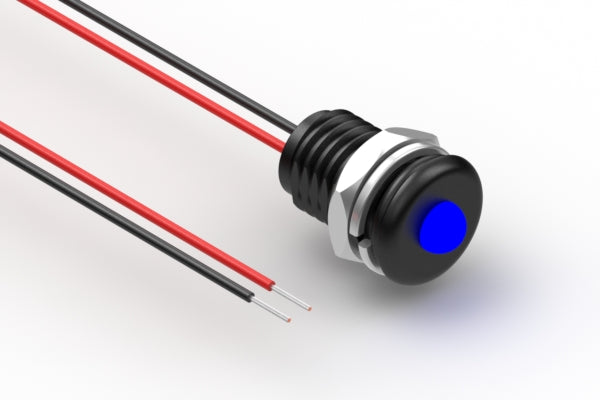 Cable, 150 mm, blue LED 57-00008 to 5 mm tinned, 5-30 V, panel mount, 26 AWG, UL11028, IP68
