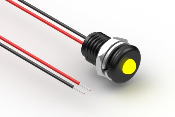 Cable, 150 mm, yellow LED 57-00004 to 5 mm tinned, 5-30 V, panel mount, 26 AWG, UL11028, IP68