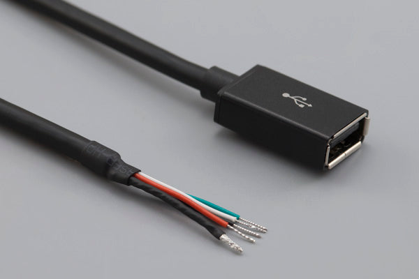 Cable, 1000 mm, 50-00576 USB A receptacle to 5 mm tinned, 28 AWG, 30-00088 wire
