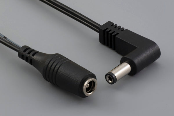 Cable, 915 mm, 5.5x2.1x12 mm, 90° 50-00370 plug to 5.5x2.1 mm, 50-00025 jack, 18 AWG, 30-00007 wire