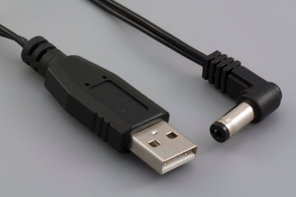 Cable, 1830 mm, USB A plug to 5.5x2.1x12 mm 90° 50-00186 plug, center neg, 22 AWG, UL2468, 30-00008
