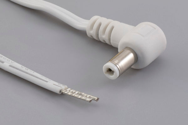 Cable, 1830 mm, 5.5x2.5x10 mm 90° 50-00525 dc plug to stripped tinned, 18 AWG, 30-00396 wire, white