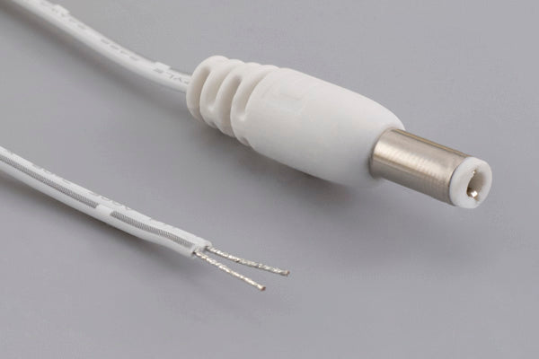 Cable, 1830 mm, 5.5x2.5x12 mm 50-00314 dc plug to stripped tinned, 24 AWG, 30-00405 wire, white