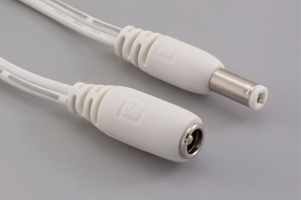 Cable, 915 mm, 5.5x2.5x12 mm 50-00314 plug to 5.5x2.5 mm 50-00027 jack, 18 AWG, 30-00396 wire, white