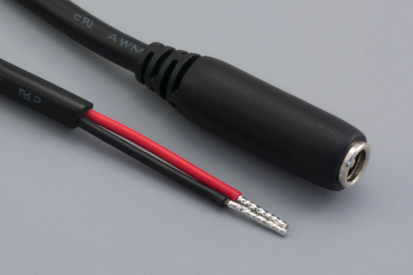 Cable, 915 mm, 5.5x2.5 mm 50-00027 dc jack to stripped tinned, 18 AWG, 30-00683 wire