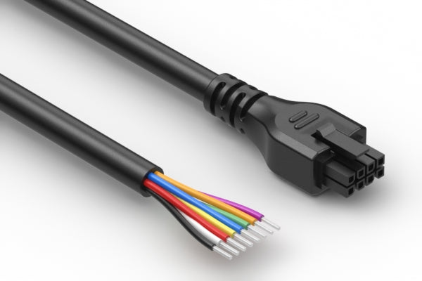 Cable, 1000 mm, 8C, 3.0 mm pitch dual row rectangular housing socket to stripped tinned, overmold