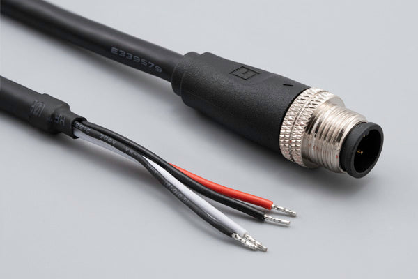 Cable, 3000 mm, 1.0 mm 3C 50-00986 M12 plug to 5 mm tinned, 22 AWG, 30-01570 wire, shielded