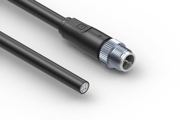 Cable, 10000 mm, 8 pin 50-00993 M12 X-code plug to blunt cut, CAT6a, 24 AWG, 30-01713 wire