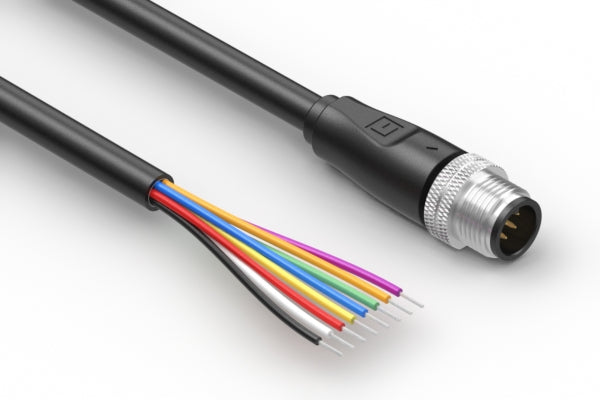 Cable, 500 mm, 0.8 mm 8C 50-00962 M12 plug to 5 mm tinned, 24 AWG, 30-01691 wire