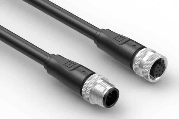 Cable, 500 mm, 0.8 mm 8C 50-00983 M12 socket to 0.8 mm 50-00990 M12 plug, 24 AWG, 30-01611 wire