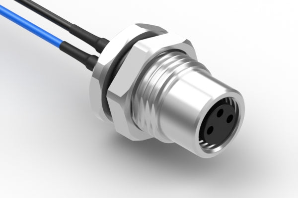 Cable, 305 mm, M8 3C socket panel mount 54-00292 to blunt cut, 24 AWG, UL 11028 hook-up wire