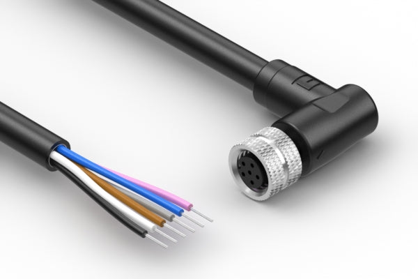 Cable, 500 mm, 0.7 mm 6C 90° 50-01034 M8 socket to 5mm tinned, 26 AWG, 30-02981 wire