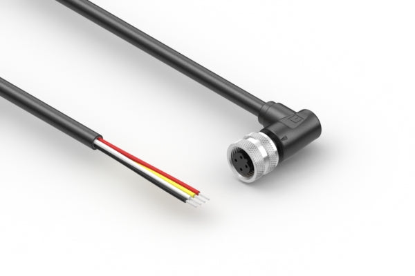Cable, 3000 mm, 1.0 mm 4C 90° 50-01014 M12 socket B-code to 5mm tinned, 22 AWG, 30-01658 wire