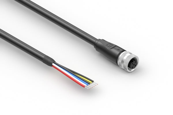 Cable, 10000 mm, 1.0 mm 5C 50-01020 M12 socket B-code to 5mm tinned, 22 AWG, 30-01586 wire, shielded
