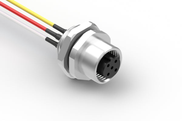 Cable, 305 mm, M12 5C socket B-code panel mount 54-00348 to blunt cut, 22 AWG, UL 11028 hook-up wire