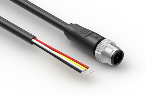 Cable, 5000 mm, 1.0 mm 4C 50-01027 M12 plug D-code to 5mm tinned, 22 AWG, 30-01658 wire
