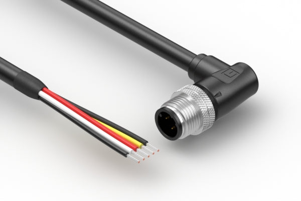 Cable, 500 mm, 1.0 mm 4C 90° 50-01029 M12 plug D-code to 5mm tinned, 22 AWG, 30-01578 wire, shielded