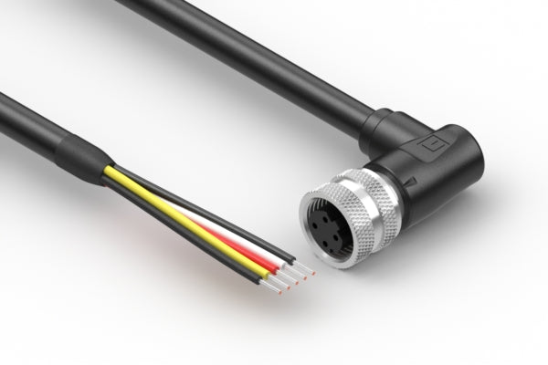 Cable, 1500 mm, 1.0 mm 4C 90° 50-01028 M12 socket D-code to 5mm tinned, 22 AWG, 30-01578 wire, shield