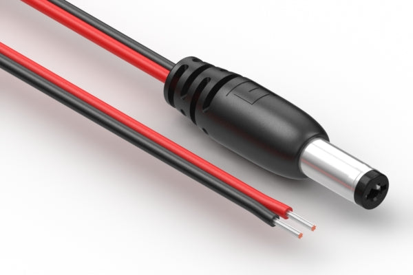 Cable, 915 mm, 5.5x2.1x12 mm 50-00706 dc plug to 5 mm tinned, 20 AWG, UL21516, 30-03165 wire, R-B
