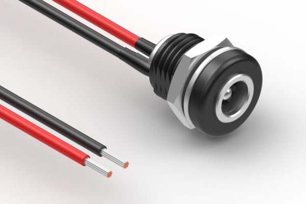 Cable, 305 mm, 5.5x2.1 mm 54-00401 dc panel mount jack to stripped and tinned, 18 AWG, UL 1332 hook-up wire