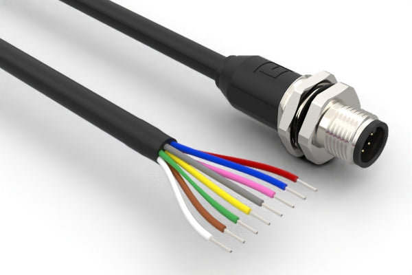 Cable, 1000 mm, M12 A-code plug 8 pin panel mount 54-00538 to 5 mm tinned, 24 AWG, 30-03792 wire