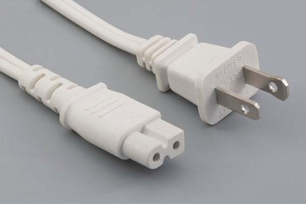 Ac cord, 1000 mm, U.S, NEMA 1-15P plug, TLY-1P to C7, TLY-53, 18 AWG, SPT-2 wire, 30-00247, white