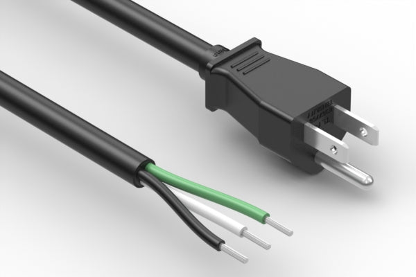 Ac cord, 1000 mm, U.S., Nema 5-15P plug, TLY-13 to 10 mm tinned, 14 AWG, SJT wire, 30-01362