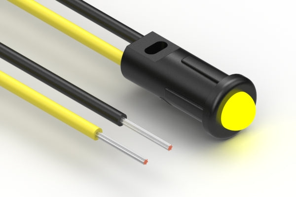 Cable, 150 mm, yellow LED 57-00004 to 5 mm tinned, panel mount, 26 AWG UL11028