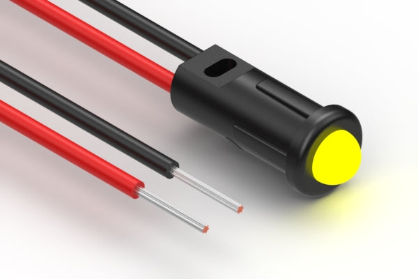 Cable, 150 mm, yellow LED 57-00004 to 5 mm tinned, panel mount, 26 AWG UL11028