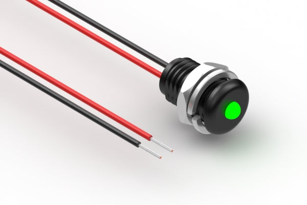 Cable, 305 mm, green LED 57-00002 to 5 mm tinned, 5-30 V, panel mount, 26 AWG, UL11028, IP68