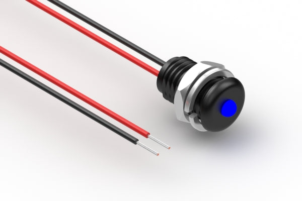 Cable, 305 mm, blue LED 57-00003 to 5 mm tinned, 5-30 V, panel mount, 26 AWG, UL11028, IP68