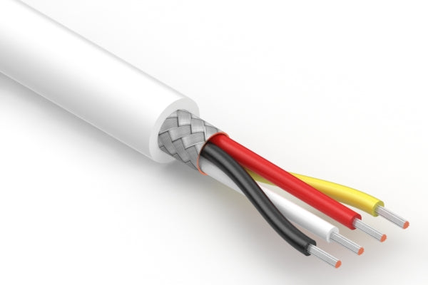 Wire, 4C TS, 24 AWG, 30V, 80C, 4.5 mm, braid shield, TPE, 70A, white
