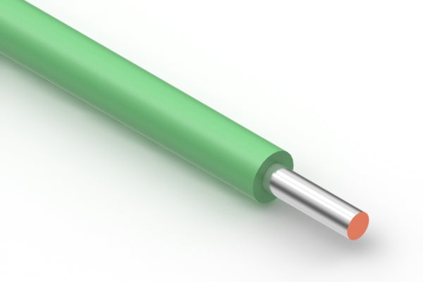 Wire, hook-up, tinned solid core, 20 AWG, UL11028, 600V, 105C, 1.5 mm, mPPE, green