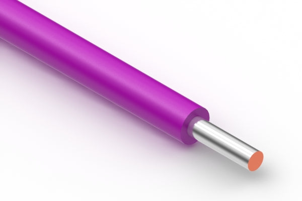 Wire, hook-up, tinned solid core, 28 AWG, UL11028, 600V, 105C, 0.9 mm, mPPE, purple