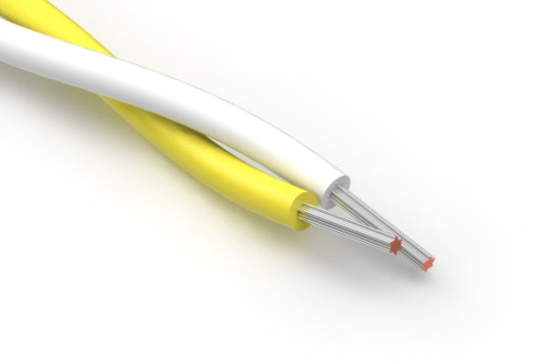 Wire, 2C, 1 twisted pair, TS, 22 AWG, UL1640, 30V, 80C, 1.55 mm, FT2, cellular PE, white/yellow