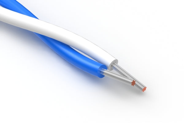 Wire, 2C, 1 twisted pair, TS, 26 AWG, UL1640, 30V, 80C, 0.95 mm, FT2, cellular PE, white/blue