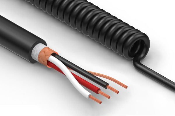 Coiled cable, 2230 mm, 3C blunt cut to same, 22 AWG, 4.9 mm, TPU, shielded, 30-00912 wire