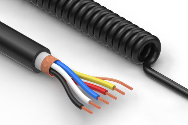 Coiled cable, 2230 mm, 5C blunt cut to same, 18 AWG, 7.0 mm, TPU, shielded, 30-00920 wire