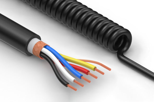Coiled cable, 2230 mm, 5C blunt cut to same, 22 AWG, 5.6 mm, TPU, shielded, 30-00922 wire