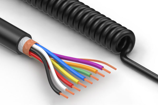 Coiled cable, 1115 mm, 8C blunt cut to same, 20 AWG, 7.2 mm, TPU, shielded, 30-00936 wire