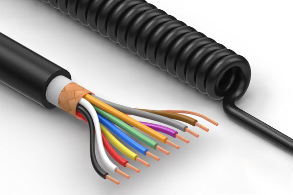 Coiled cable, 1115 mm, 10C blunt cut to same, 26 AWG, 6.2 mm, TPU, shielded, 30-00949 wire