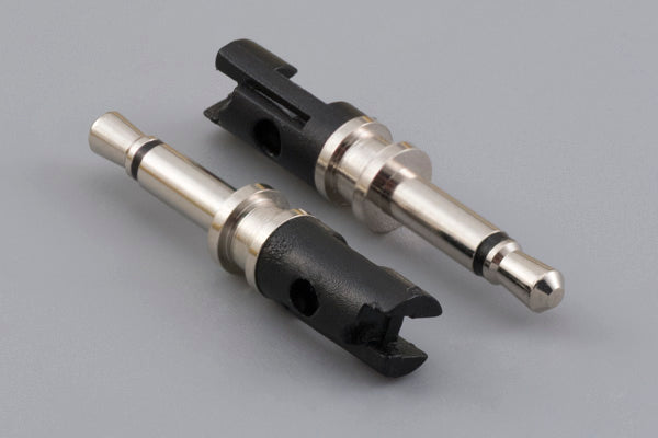 Connector, mono plug, 2.5xL23 mm, brass, nickel plated, molding style