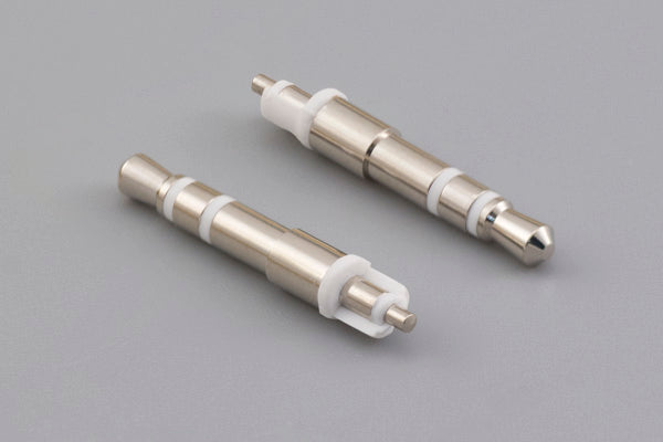 Connector, stereo plug, 2.5 mm, brass, nickel plated, white insulators