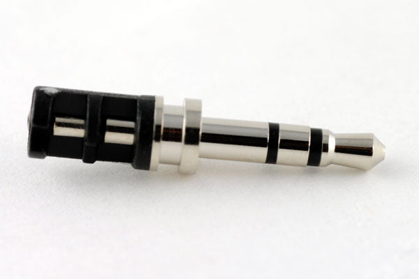 Connector, stereo plug, 2.5xL21.5 mm, brass, nickel plated, molding style