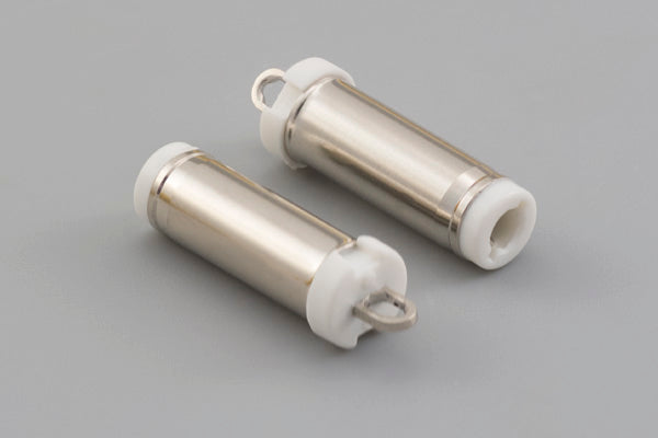 Connector, dc plug, 5.5x2.5xL21mm, brass, nickel plated, molding type, white insulators