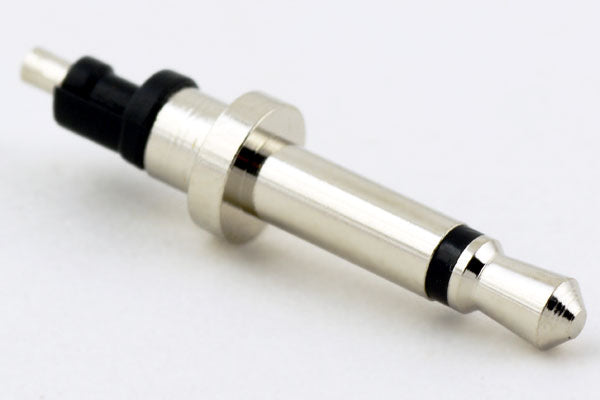 Connector, mono plug, 2.5xL19.6 mm, brass, nickel plated, molding style