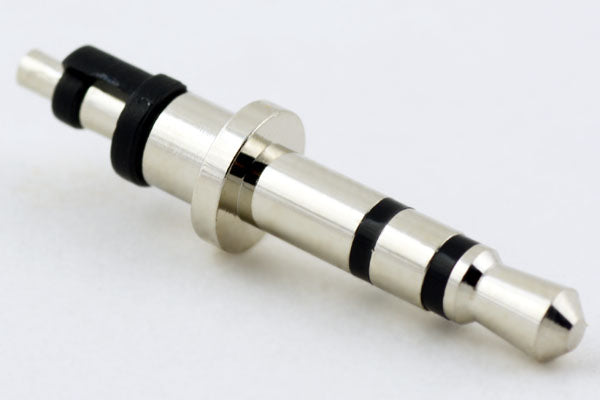 Connector, stereo plug, 2.5xL19.6 mm, brass, nickel plated, molding style